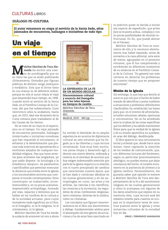 Melchor Sánchez de Toca Alameda, La esperanza de la fe en un mundo secular. Discernimiento cultural y anuncio del Evangelio para las islas lejanas en tiempos de cambio. PPC (Madrid 2025) 354 páginas.