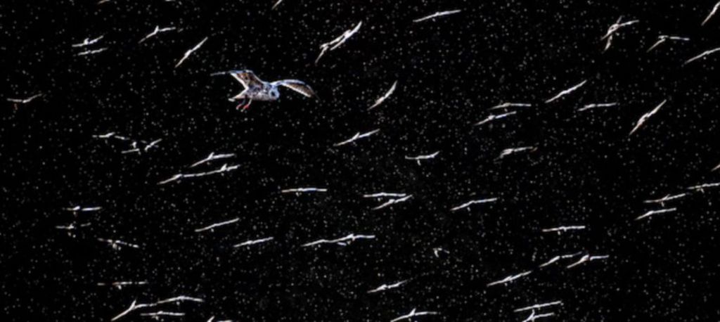 Y el jurado decidió concederle el galardón por la fotografía con la que concursó. En ella figura una gaviota, durante una tormenta, en medio de una bandada de estorninos.