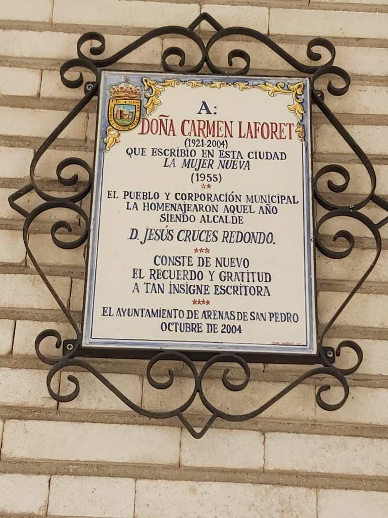 En la localidad abulense de Arenas de San Pedro se mantiene vivo el recuerdo de la estancia de Carmen Laforet, del lugar en donde se encontraba la casa en la que residía, de la presencia de su marido y de sus hijos, de su paso por las calles para ir a Misa, y en la fachada del ayuntamiento hay una placa, colocada y descubierta en 2004, año de fallecimiento de Carmen, para rendirles homenaje a ella y a la obra gestada y alumbrada en aquella ciudad en la que san Pedro de Alcántara entregó definitivamente su alma a Dios en 1562.