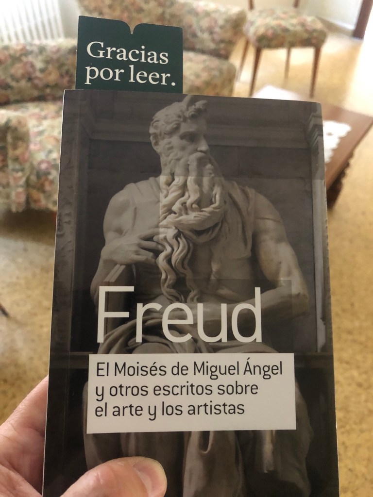 Se dice que Miguel Ángel conminó a la estatua, golpeándola en la rodilla, con estas palabras: «¡Habla!». Solo que le habló, no al escultor, sino a Freud, que, como fruto de aquellas visitas, concibió su ensayo sobre el Moisés y otros estudios sobre esta figura del Antiguo Testamento y sobre el monoteísmo.
