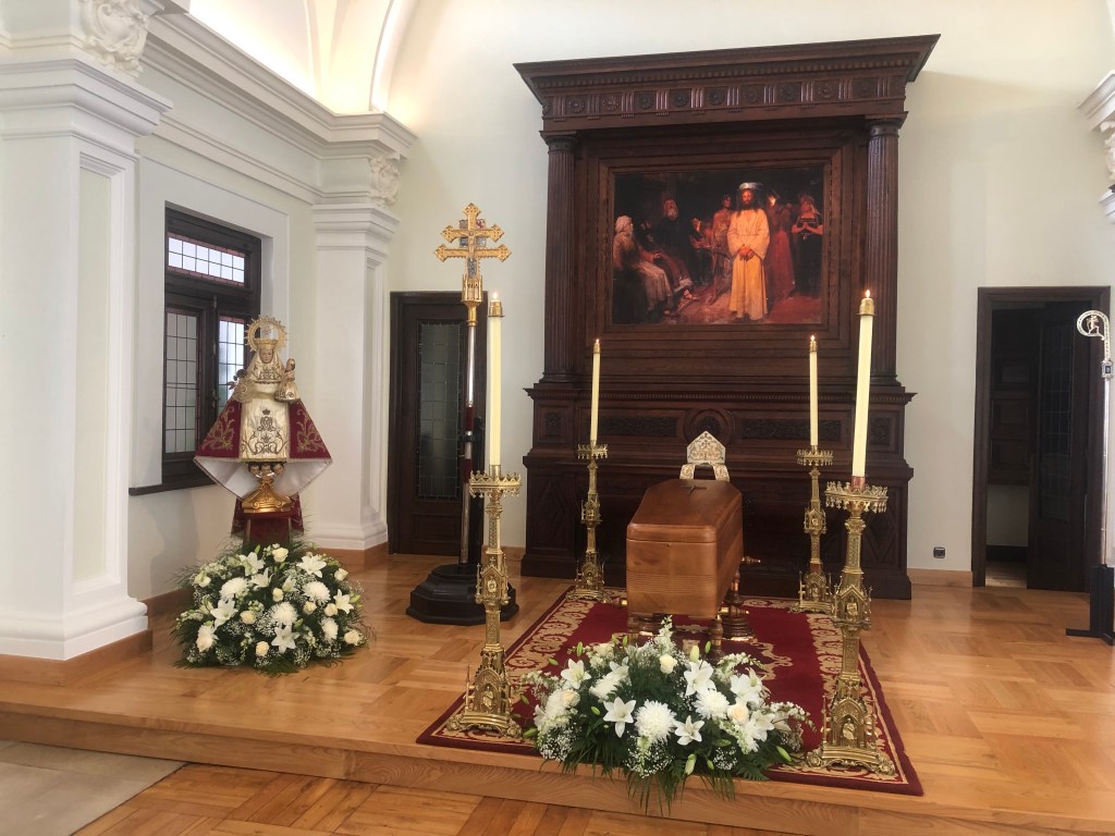 Hoy la imagen de la Virgen, traída desde el santuario de Covadonga, lo acompaña en sus últimas horas entre nosotros en la capilla ardiente instalada en el Arzobispado de Oviedo.