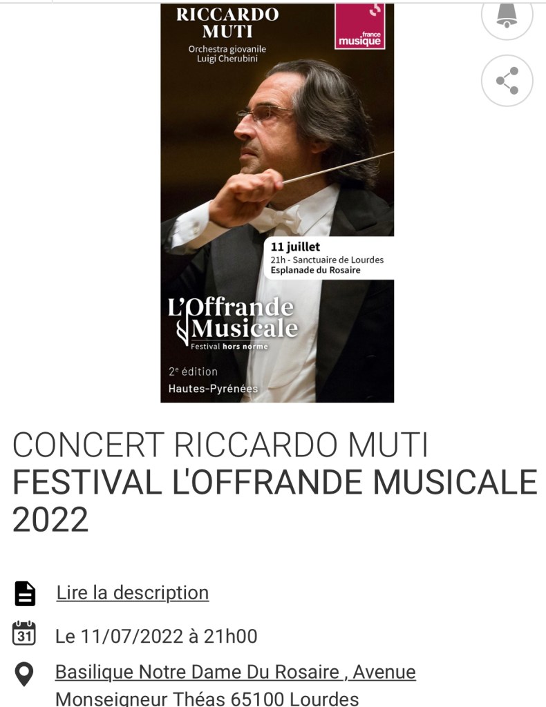 Y se pensó que la participación en el evento podría ser de interés para los estudiantes de Primaria de Lourdes y Tarbes, pues se trata de un concierto de alto nivel, dirigido por una personalidad musical de gran talla, como es Muti, y en homenaje a los enfermos y a personas de movilidad reducida, que, provenientes de todas partes, peregrinan al lugar de las apariciones de la Virgen María.