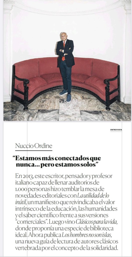 En «El País Semanal» del domingo 9 de octubre de 2022, el profesor Nuccio Ordine, autor de «La utilidad de lo inútil», «Clásicos para la vida. Una pequeña biblioteca ideal» y recientemente de «Los hombres no son islas. Los clásicos nos ayudan a vivir», habla de las «pedagogías hedonistas», que explica así: