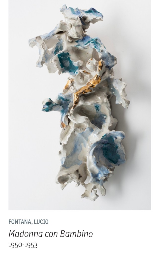 Me estoy refiriendo nada más y nada menos que a la “Madonna con Bambino” (1950-1953), escultura en cerámica esmaltada policromada, de Lucio Fontana en el Museo de Arte Contemporáneo “Helga de Alvear” de Cáceres.