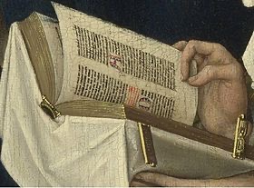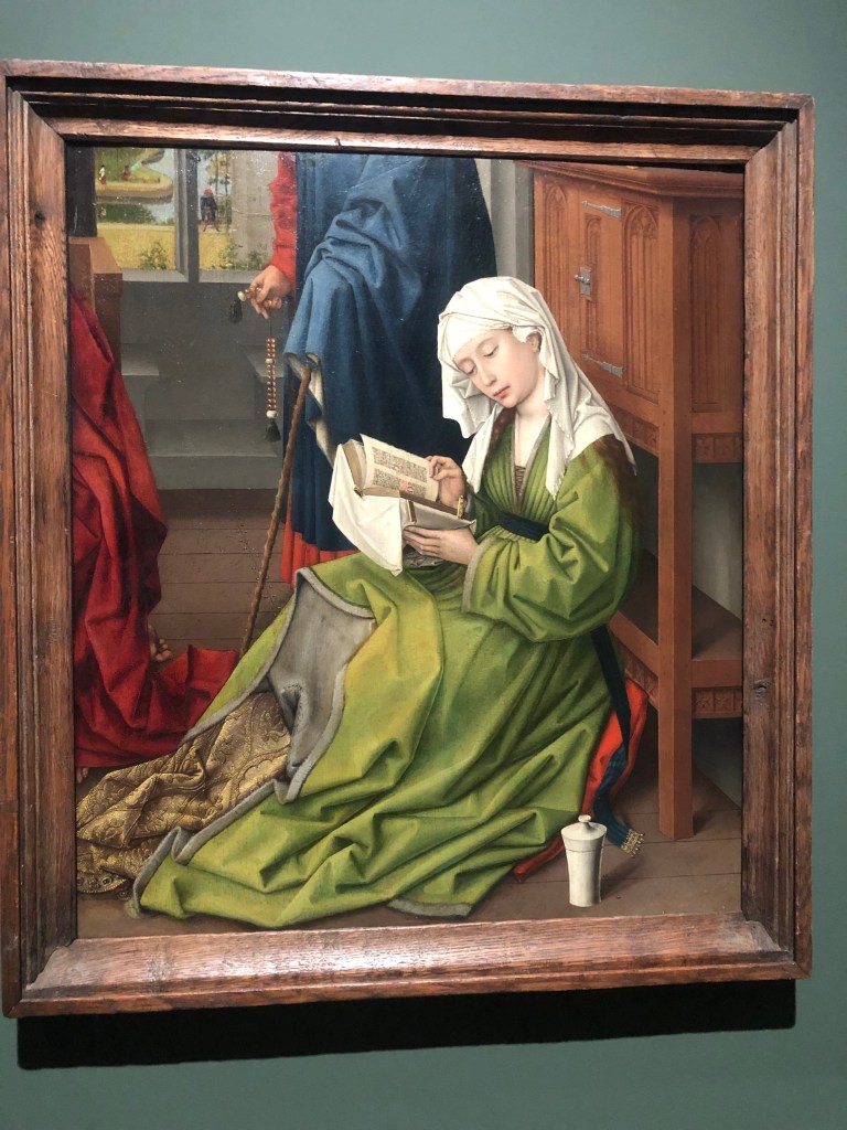 El cuadro, datado en 1439, es de Rogier van der Weyden (1399-1464). Se encuentra en la National Gallery de Londres y representa a María Magdalena leyendo. Se cree que es ella por el pomo de ungüento que está en el suelo, ya que se ha dicho que es la María de este pasaje del Evangelio según san Juan: «María, pues, tomó una libra de perfume muy caro, hecho de nardo puro, le ungió los pies y se los secó con sus cabellos, mientras la casa se llenaba del olor del perfume.» (Jn 12,3).