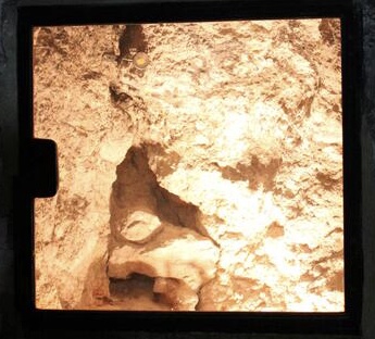 Resquebrajadura en la roca del Calvario. Se dice que la produjo un seísmo