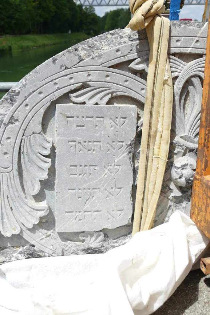 Han aparecido, en el fondo de una presa, restos de la Gran Sinagoga de Múnich, que Hitler ordenó demoler en 1938. Entre ellos, una lápida con unos imperativos verbales correspondientes a estos mandamientos de la Ley de Dios, entregada a Moisés en el monte Sinaí: