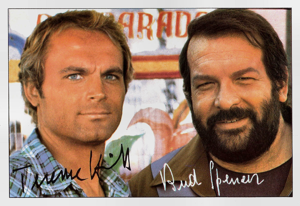El napolitano Bud Spencer, el fuerte, se llamaba en realidad Carlo Pedersoli (1929-2016), pero adoptó el nombre artístico con el que se le conoce debido a la admiración que le profesaba a Spencer Tracy, su actor favorito, y por la cerveza Budweiser, que tanto le gustaba. De aquí lo de Bud Spencer.