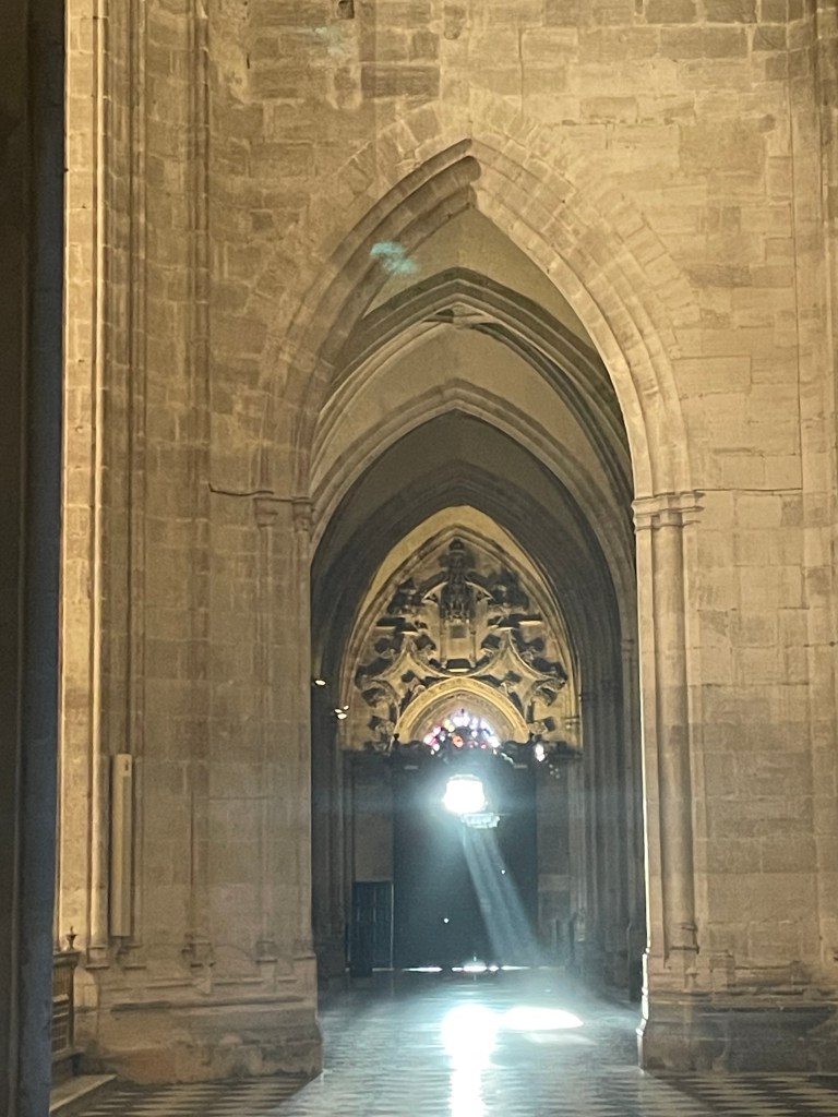 Y al caer de la tarde, la luz que entra por la puerta de la catedral de Oviedo nos inunda de claridad, de gozo y de esperanza. Allí quedará en reserva, como agua recogida en el pozo, para que no nos entristezcamos. No estaremos, durante la noche, solos, desasistidos, tristes. El que ha dicho «¡Yo soy la Luz!», vive entre nosotros, con nosotros, en nosotros, … en la Iglesia: