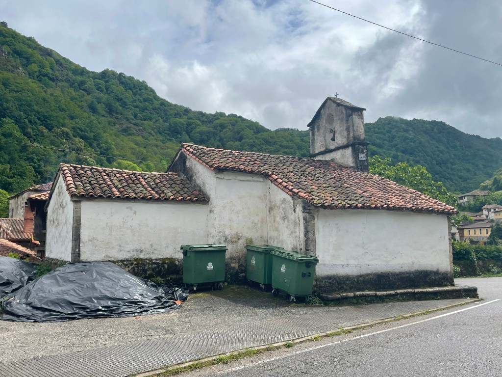 Y esto es en Asturias. Los contenedores de basura incorporados como parte esencial del monumento. Será por falta de prados para habilitar algo saneado: