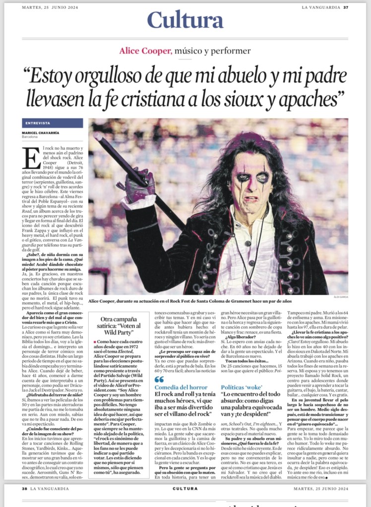 El ”Resu” de este año se inauguró con la actuación de Alice Cooper. Tiene 76 años y ha sido uno de los pioneros del rock gótico. Dado su aspecto, cuando se pinta el contorno de cada uno sus ojos para actuar, mejor es que no haya de verse uno en el trance de tener que montar a solas con él en un ascensor. Resulta, sin embargo, que es creyente: «Sé, como cristiano, que Jesús es mi Salvador».