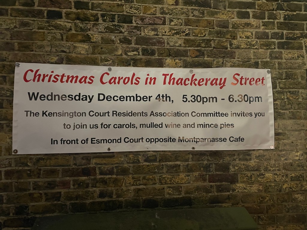 Unos villancicos preciosos, vino caliente y pasteles de carne… E invitan cordialmente a que se unan al evento todos los residentes de la calle Thackeray y cuantos pasen por allí en ese momento… La Navidad en Londres es fabulosa.