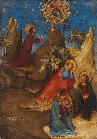 La oración en el huerto, atribuido a Colart de Laon y datado en 1405.