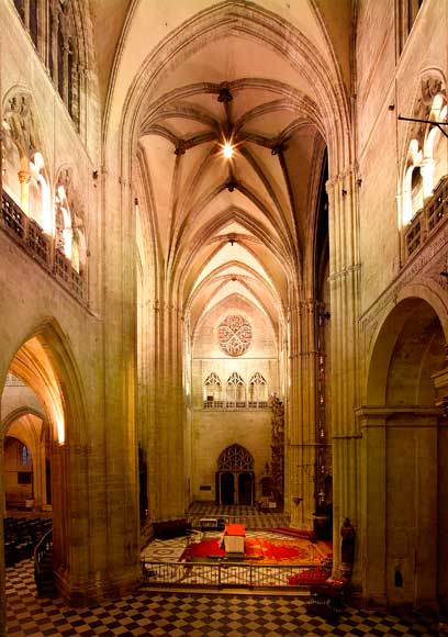 En el tercer capítulo, “Celebrando una Catedral”, la fanfarria es inaugurada por el ensemble de vientos sito en el órgano de Coro -tercer espacio escénico de la obra- y, en vivo diálogo entre los tres cuerpos sonoros, se nos brinda el desarrollo de la obra. Éste, de carácter festivo y pastoral, es escrito en ritmos ternarios que, según la tradición de la literatura musical, son relacionados numérica y simbólicamente con la Trinidad de Dios ya desde la noche de los tiempos.