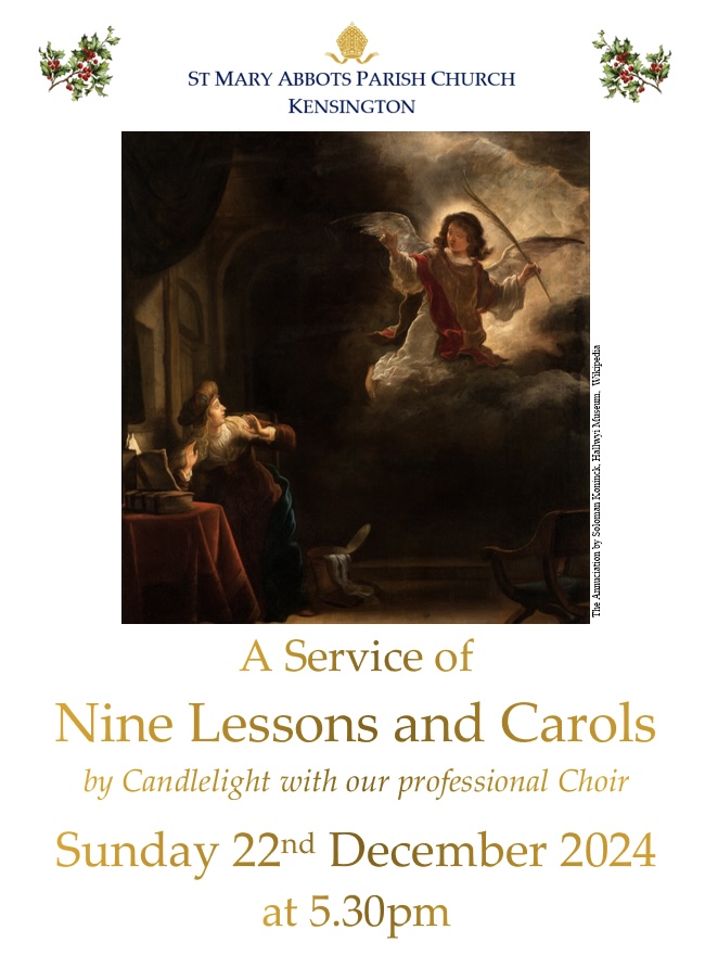 En la iglesia parroquial de St Mary Abbots (de la Iglesia de Inglaterra), en High Street Kensington, tuvo lugar el pasado domingo ese acto, que no es litúrgico, pero que tampoco es un concierto. Hay oraciones, ornamentos, velas, recogimiento, piedad. Es un maravilla: cómo leen, cómo cantan, con qué dignidad y con buen gusto lo realizan.