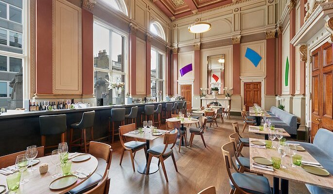 El restaurante de la Royal Academy of Arts es español. De José Pizarro. La carta está en español, con productos españoles, atienden en español y tienen colgada una bandera española.